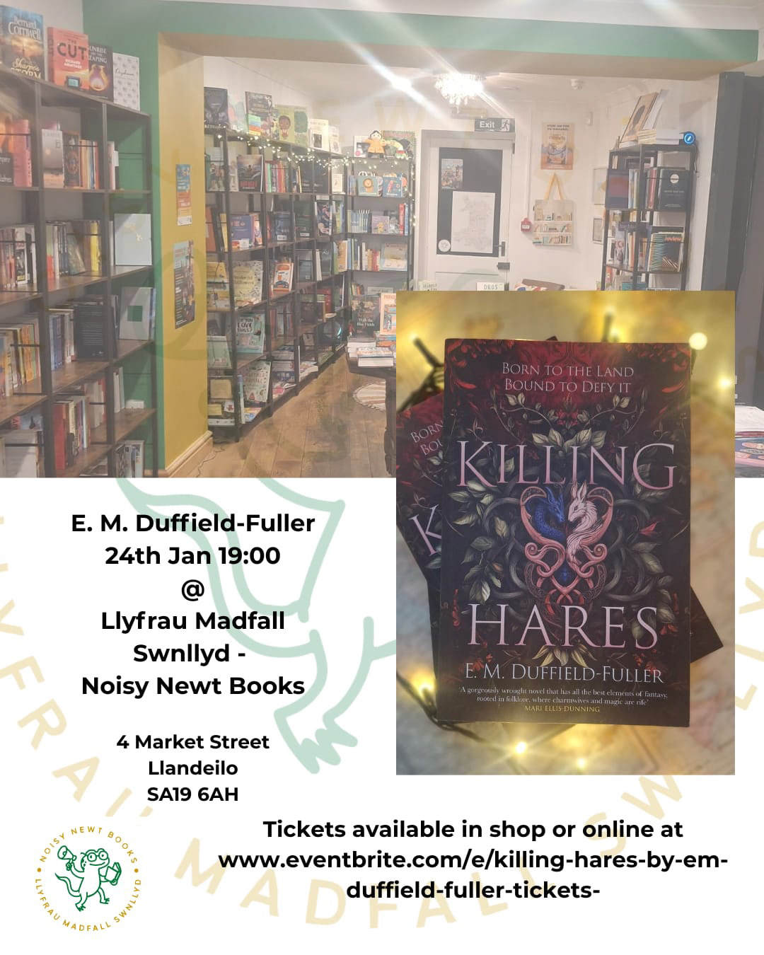 Join us at Noisy Newt Books for an evening in conversation with author E.M. Duffield-Fuller, talking about her new novel Killing Hares, published by Honno.